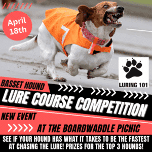 • NEW! We will have a lure course where your hounds can chase a mechanized plastic “lure” that mimics chasing live prey; check out a video of what to expect; prizes for the top 3 fastest hounds!