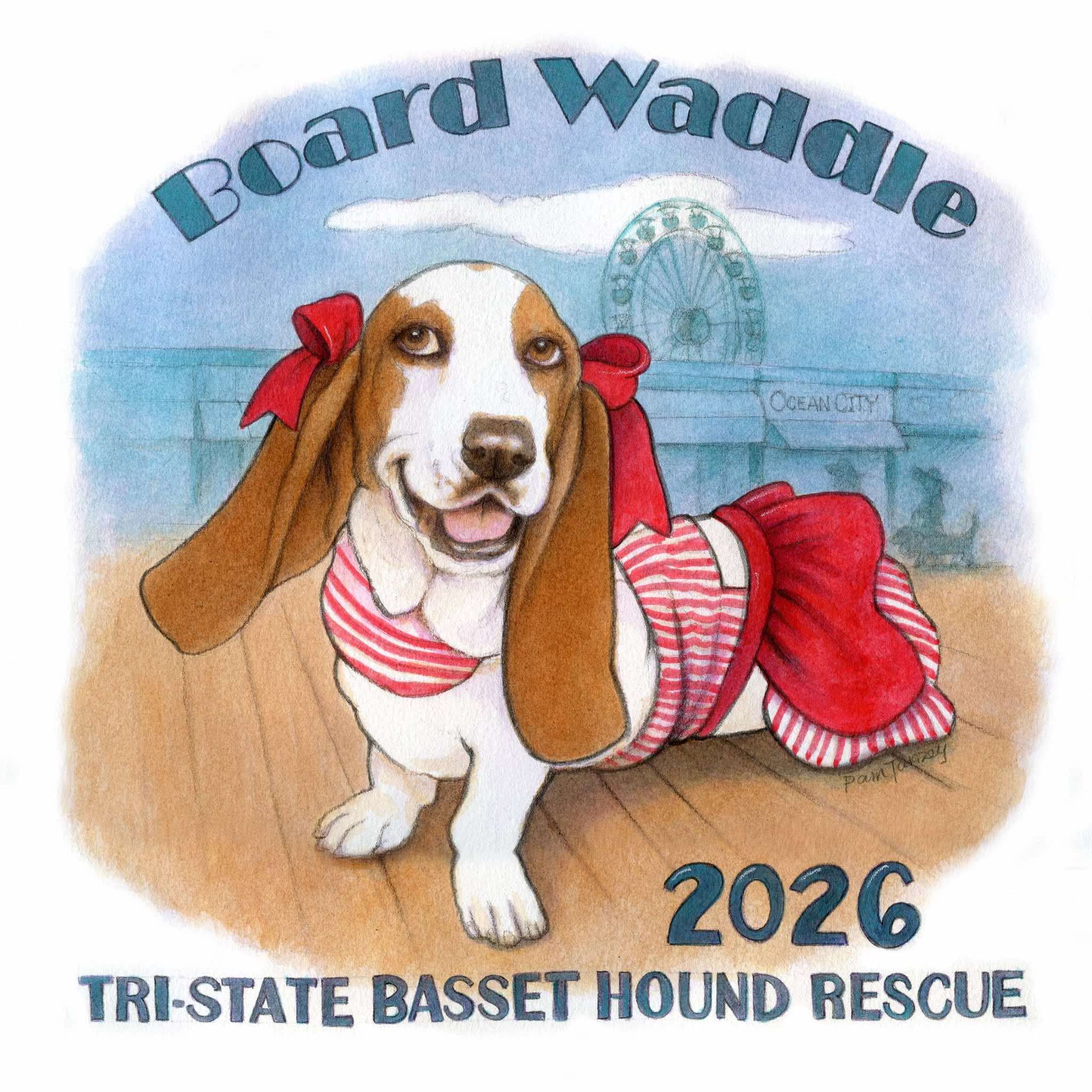 BoardWaddle is Tri-State Basset Hound Rescue’s (TSBHR) biggest and and most basset-filled fundraiser of the year, taking over the Ocean City, New Jersey area for one unforgettable weekend! The fun kicks off Friday afternoon with the entertaining Basset Hound Olympics, followed by an evening of good food and great company at Linwood Country Club, featuring a buffet dinner and our fan-favorite Pawction. Saturday is where the magic happens! The legendary Ocean City Doo Dah Parade steps off at noon, and TSBHR proudly brings the largest brigade in the parade with hundreds of basset hounds (and their people!) waddling, wagging, and stealing the show along the streets and boardwalk. After the parade, the celebration continues with our Picnic, complete with food, vendors, games, and awards. We’re rounding out BoardWaddle weekend with some additional Sunday events too! Grab your hounds and join us for a weekend full of fun, friendship, and floppy ears on April 17, 18, 19!