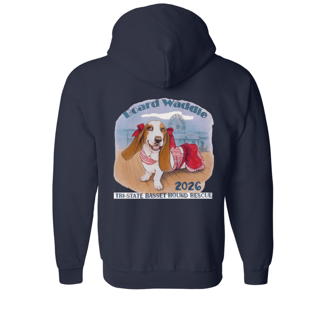Waddle shirts are a must-have, and this year’s design features a beautiful beach baby, our 2026 Grand Marshal, SKEETER LYNNE. Heavy Blend Full-Zip Hooded Sweatshirt – 50% cotton / 50% polyester. ADULT Shirt – unisex sizing. Shirt color is NAVY. Logo printed on the BACK of the shirt. The price includes shipping costs.